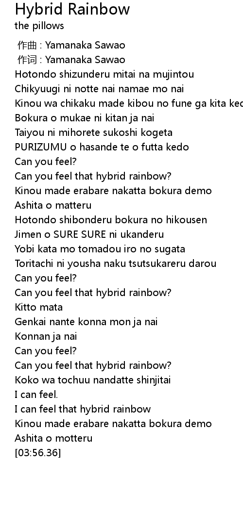 | [02:19.38] | Can you feel that hybrid rainbow? |