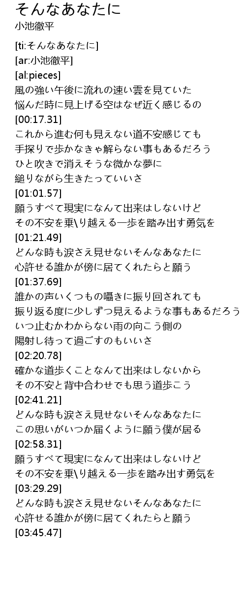 | [02:42.18] | どんな時も涙さえ見せないそんなあなたに |