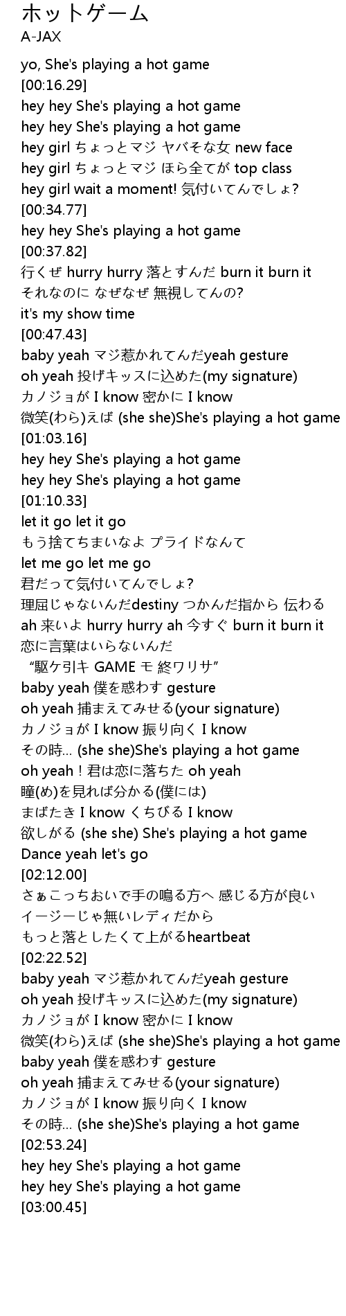 | [02:53.92] | hey hey She's playing a hot game |
