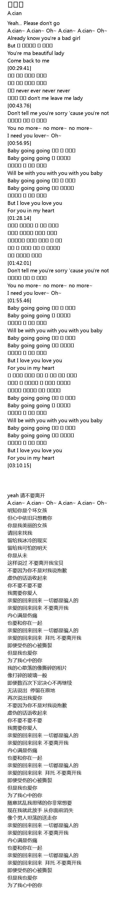 | [00:15.26] | A.cian~ A.cian~ Oh~ A.cian~ A.cian~ Oh~ |
