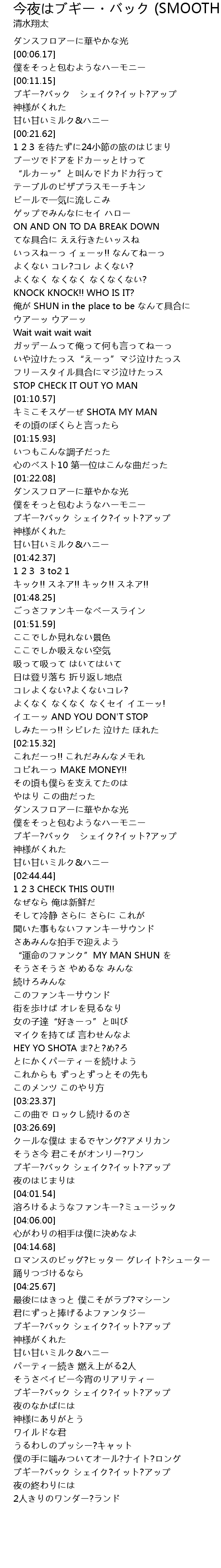 | [03:56.52] | ブギー?バック シェイク?イット?アップ |