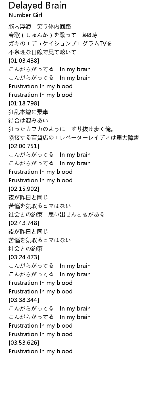 | [02:04.878] | こんがらがってる In my brain |