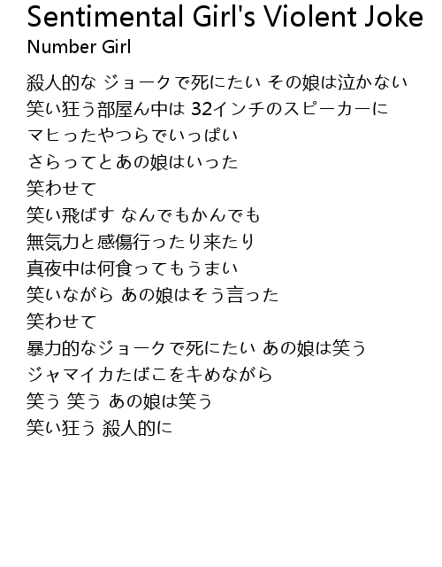 | [02:38.776] | 暴力的なジョークで死にたい あの娘は笑う |
