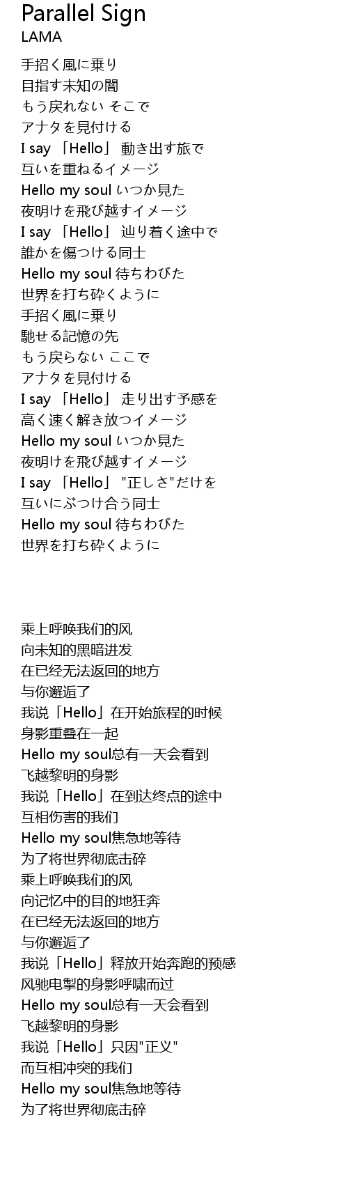 | [02:52:55] | I say 「Hello」 走り出す予感を |