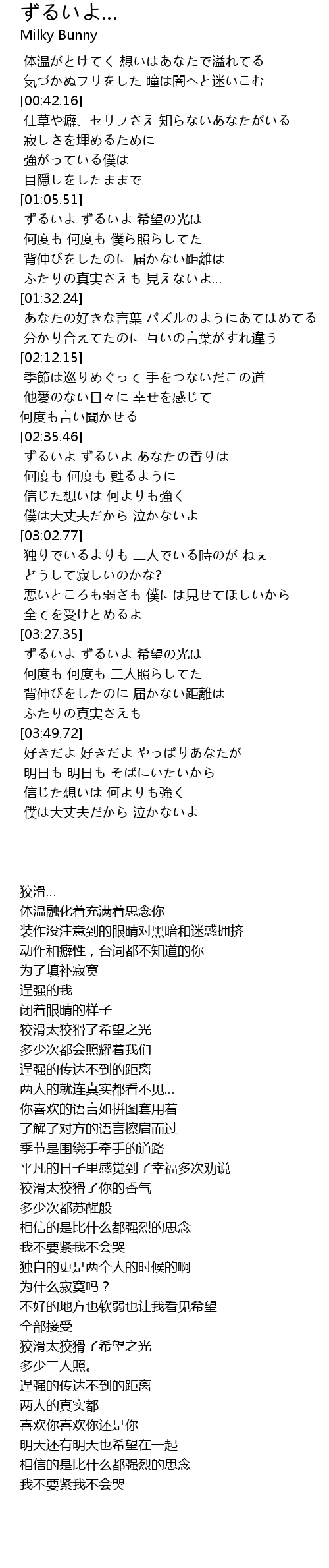 | [03:28.94] | ずるいよ ずるいよ 希望の光は |