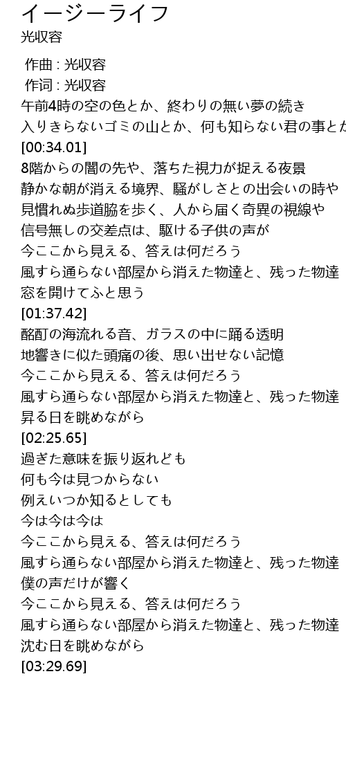 | [03:01.12] | 風すら通らない部屋から消えた物達と、残った物達 |