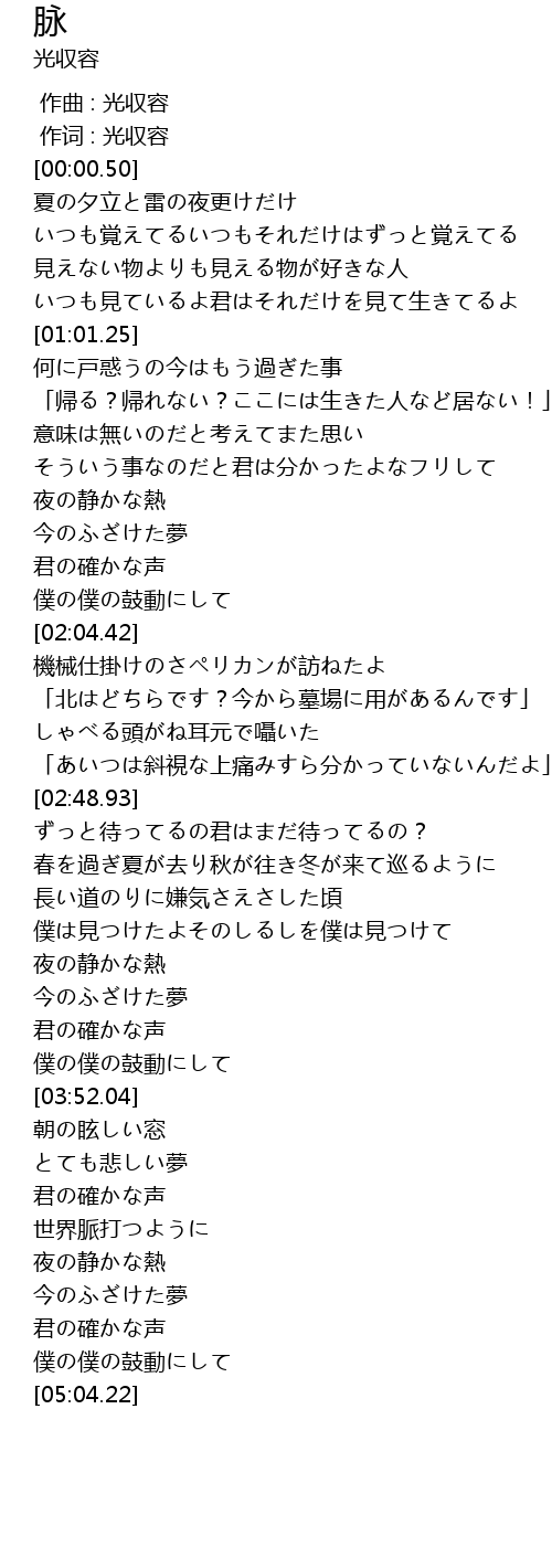 | [04:55.43] | 僕の僕の鼓動にして |