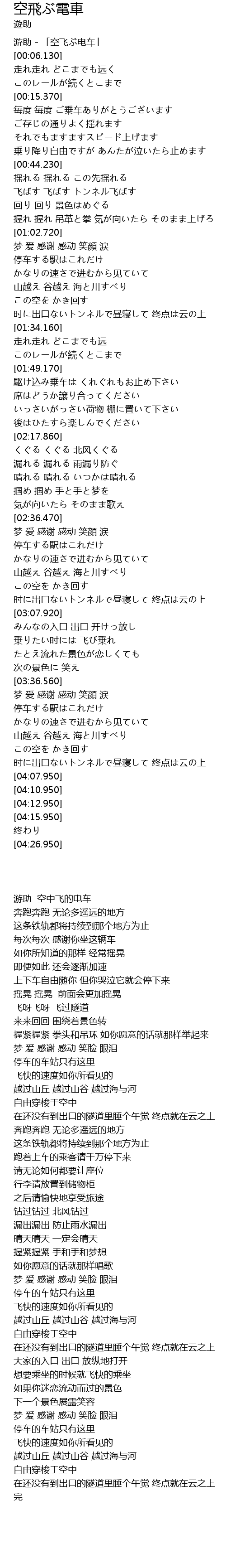 | [00:05.130] | 游助 - 「空飞ぶ电车」 |