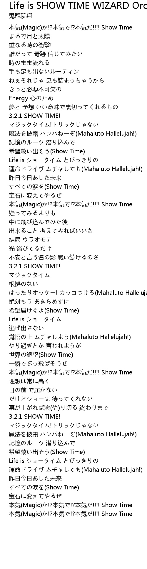 | Song | Life is SHOW TIME WIZARD Orchestra Edit. |
