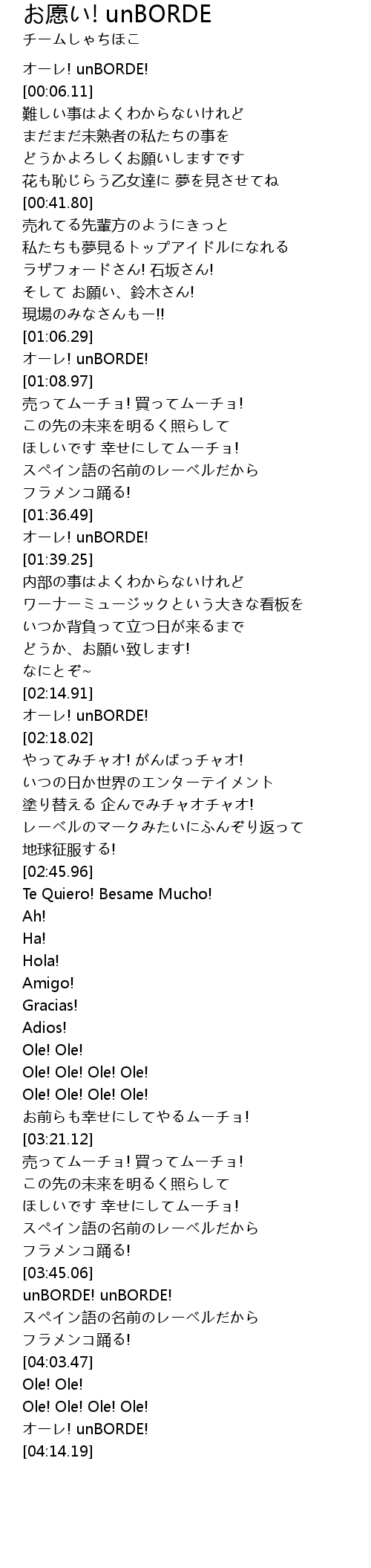 | [03:30.30] | ほしいです 幸せにしてムーチョ! |