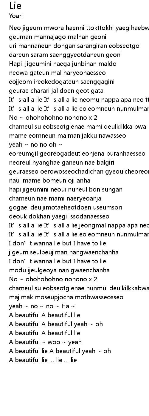 | It' s all a lie It' s all a lie eoieomneun nunmulman nawa nan | |
