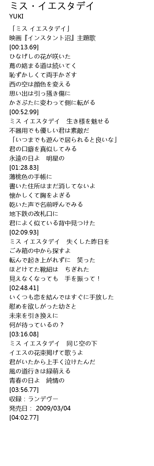 「ミス イエスタデイ」 |