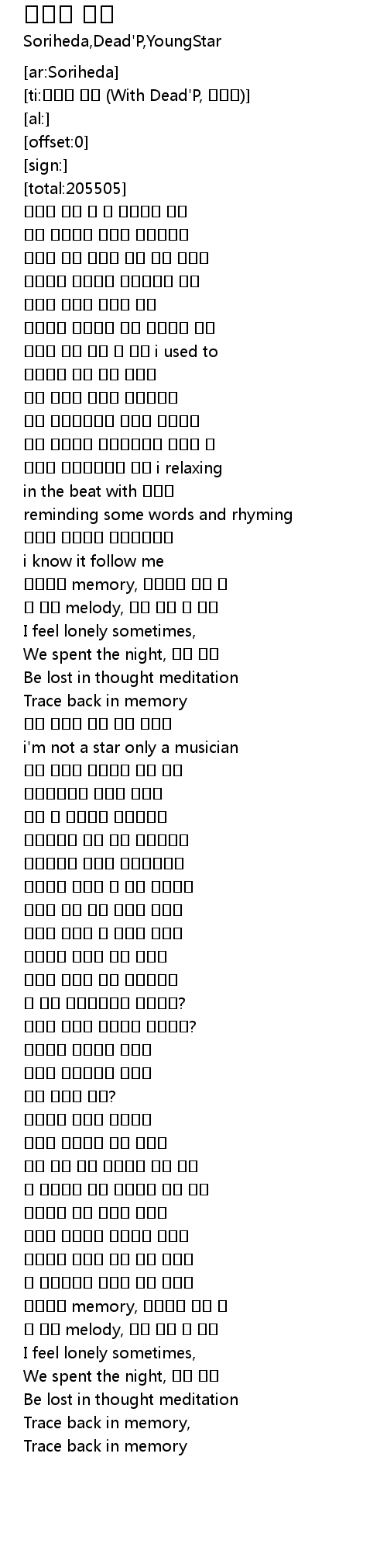 | [02:43.07] | 그 슬픈 melody, 흠뻑 취한 내 눈빛 |