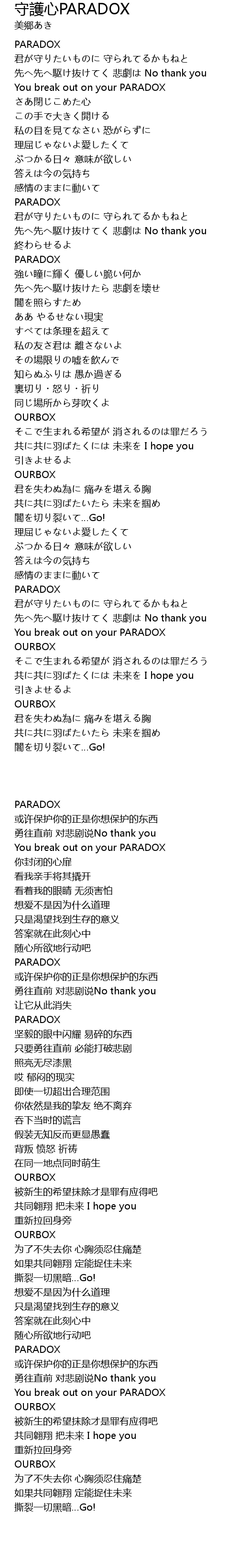 | Song | 守護心PARADOX |