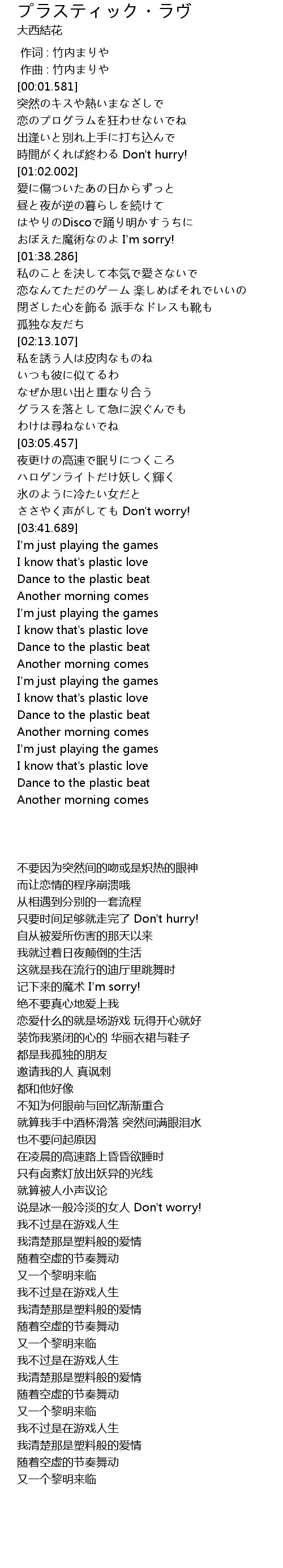 | [03:47.436] | I know that' s plastic love |