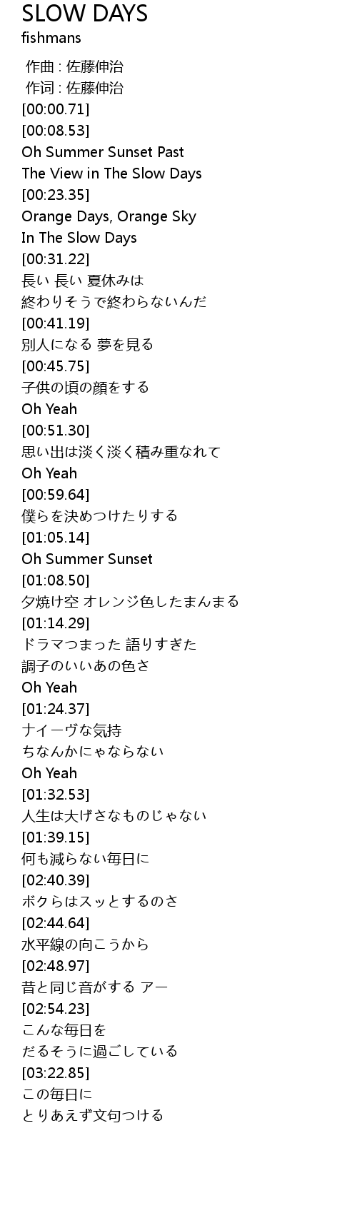 | [00:00.23] | 作词 : 佐藤伸治 |