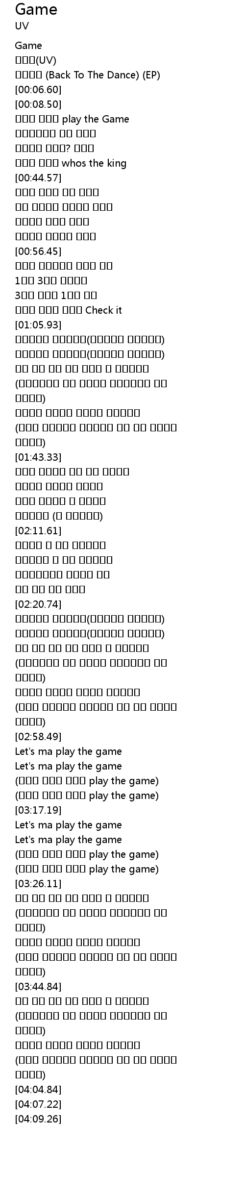 | [03:22.18] | (이밤이 새도록 새도록 play the game) |