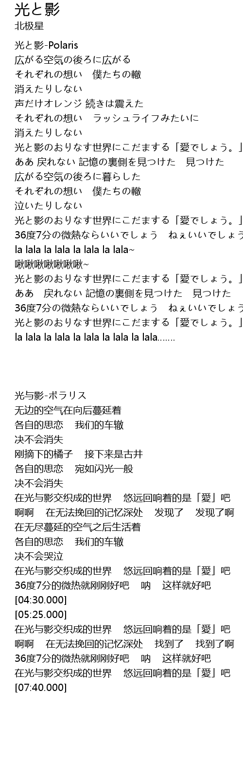 | [04:30.000] | la lala la lala la lala la lala~ |