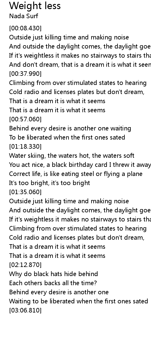 And outside the daylight comes, the daylight goes and weightless |