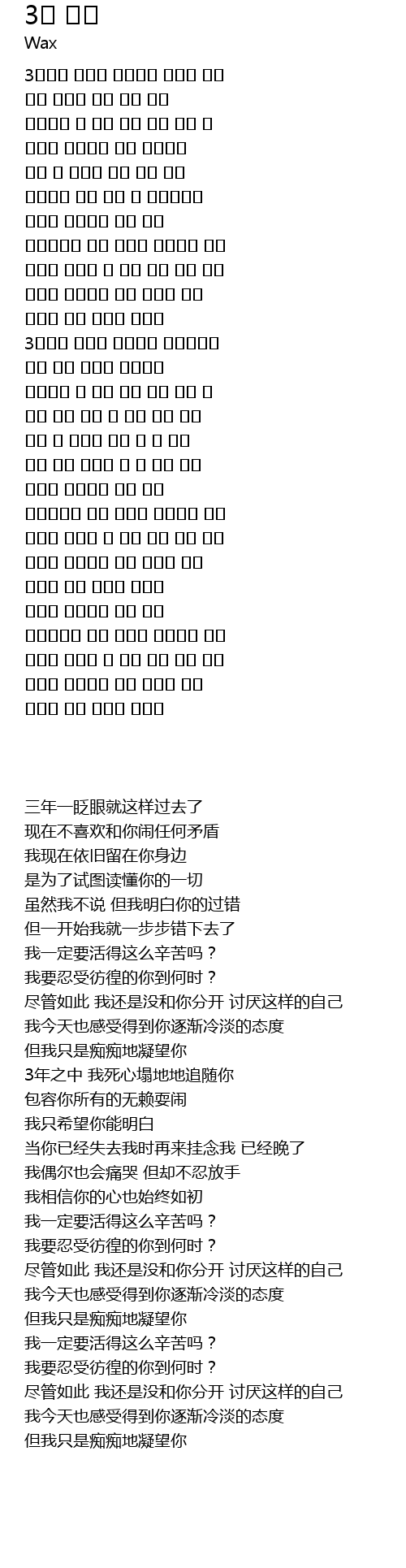 3년동안 너만을 바라보고 살아왔었어 |