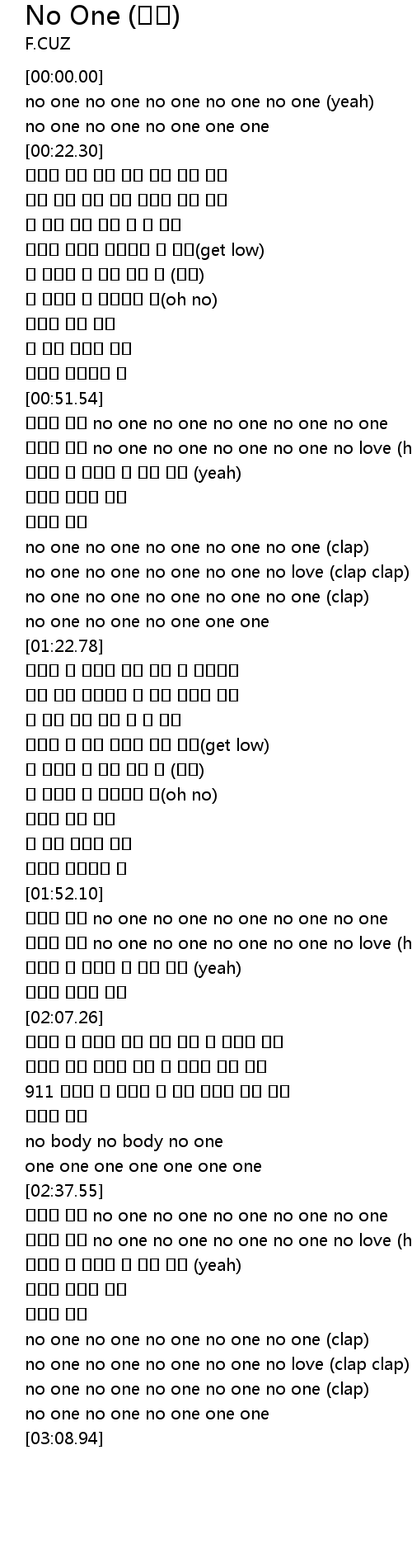| [03:01.67] | no one no one no one no one no one clap |