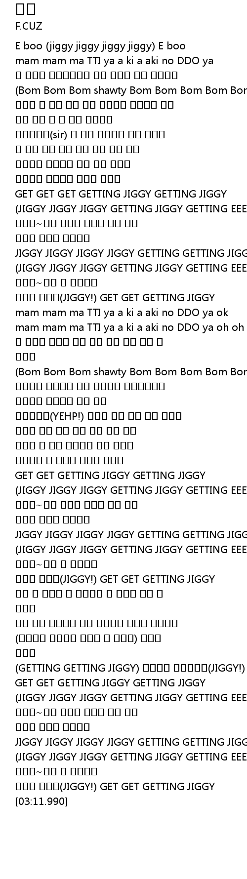 | [03:05.950] | 움직여 볼꺼야(JIGGY!) GET GET GETTING JIGGY |