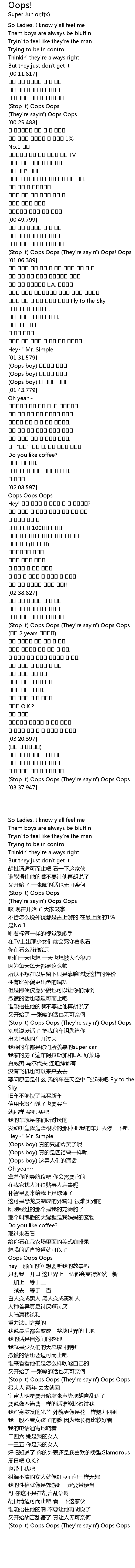 | [00:59.499] | Stop it Oops Oops They' re sayin' Oops! Oops |