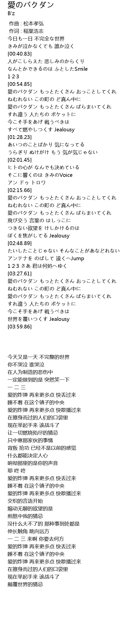 | [00:01.00] | 作词 : 稲葉浩志 |