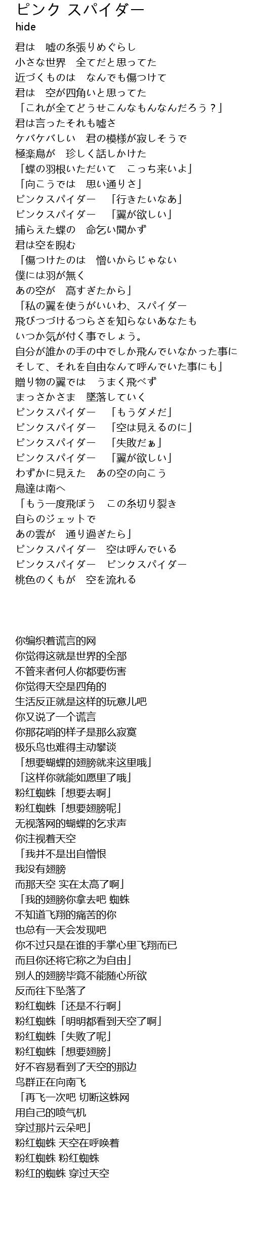 | [02:31.13] | ピンクスパイダー 「空は見えるのに」 |