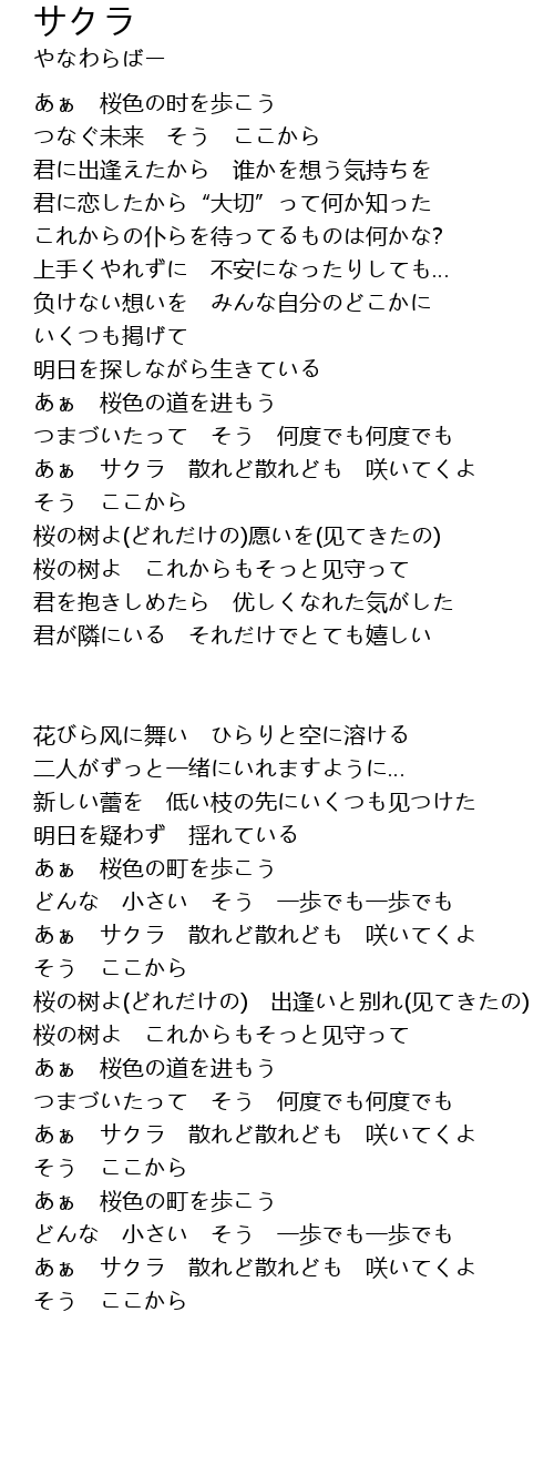 | 桜の树よ(どれだけの) 出逢いと别れ(见てきたの) | |