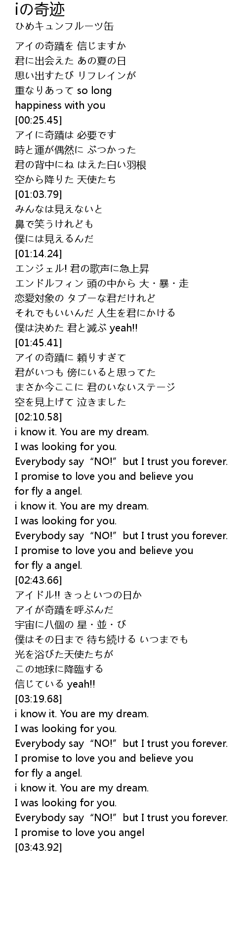 | [00:01.05] | アイの奇蹟を 信じますか |