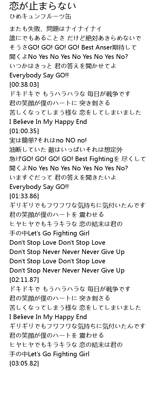 | [02:03.34] | Don't Stop Never Never Never Give Up |