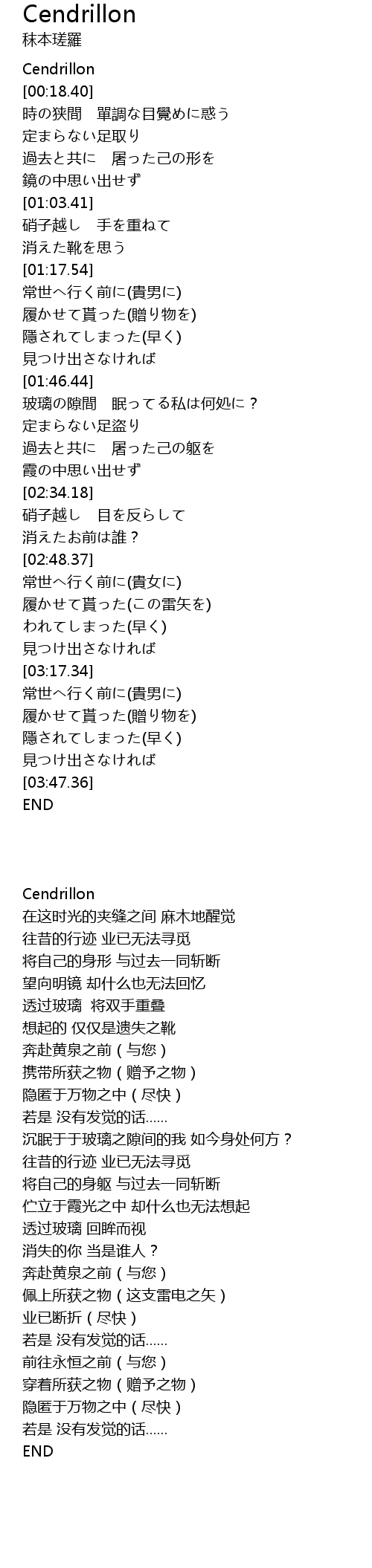 | [00:34.73] | 時の狭間 單調な目覺めに惑う |