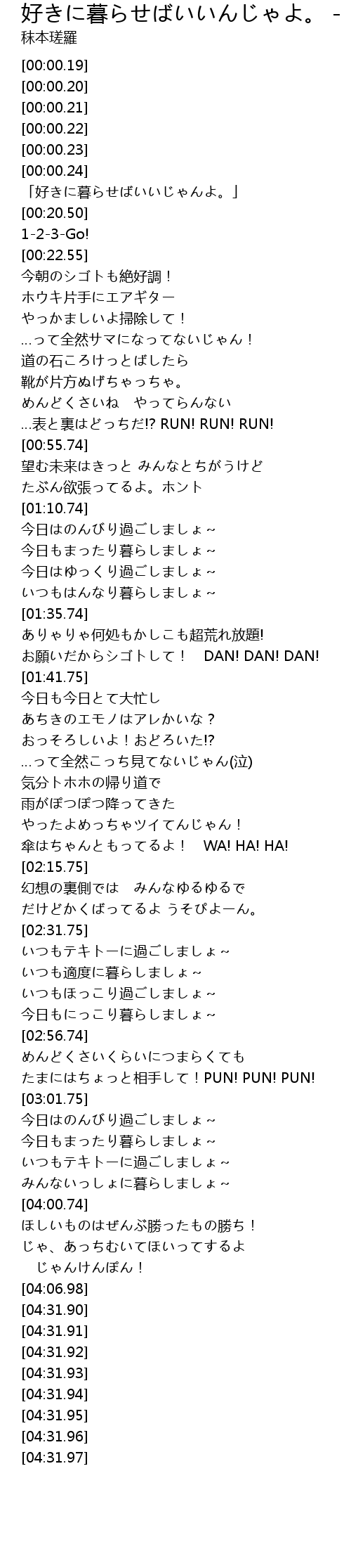 | [03:51.75] | いつもテキトーに過ごしましょ~ |
