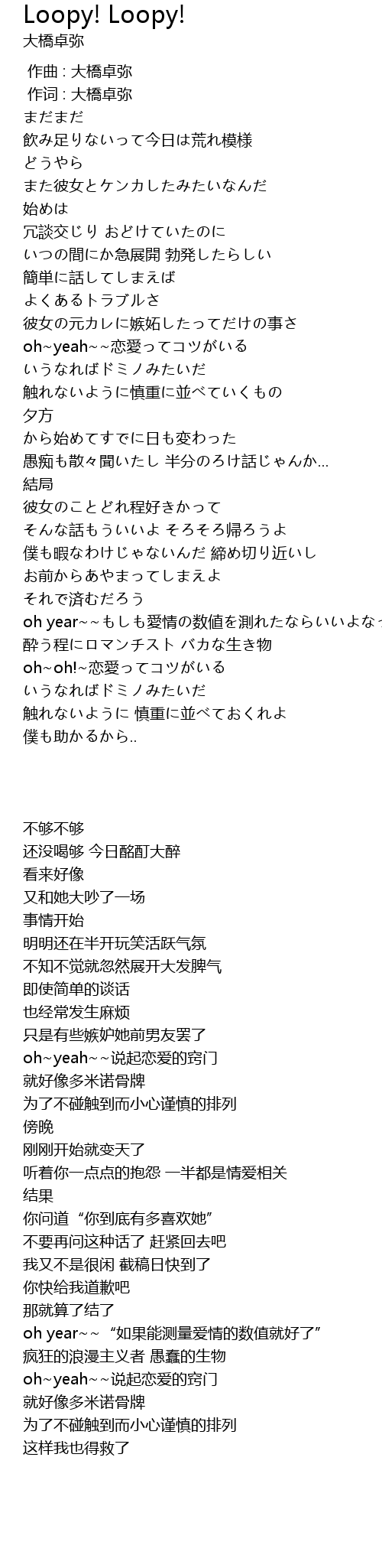 | [00:01.00] | 作词 : 大橋卓弥 |