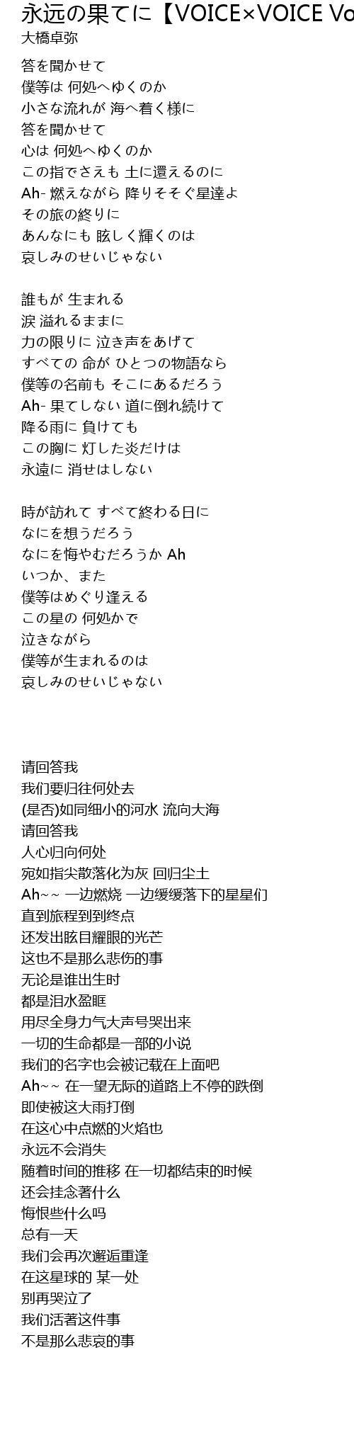 | Ah- 燃えながら 降りそそぐ星達よ | |