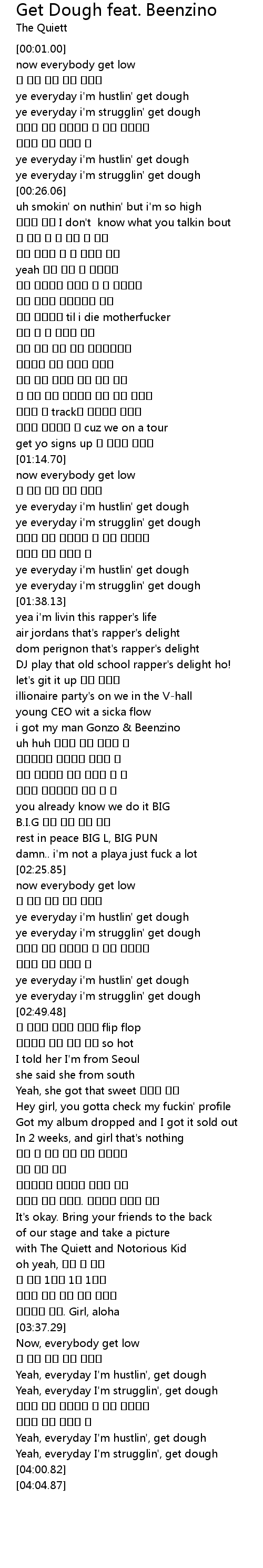 | [01:23.00] | ye everyday i'm strugglin' get dough |