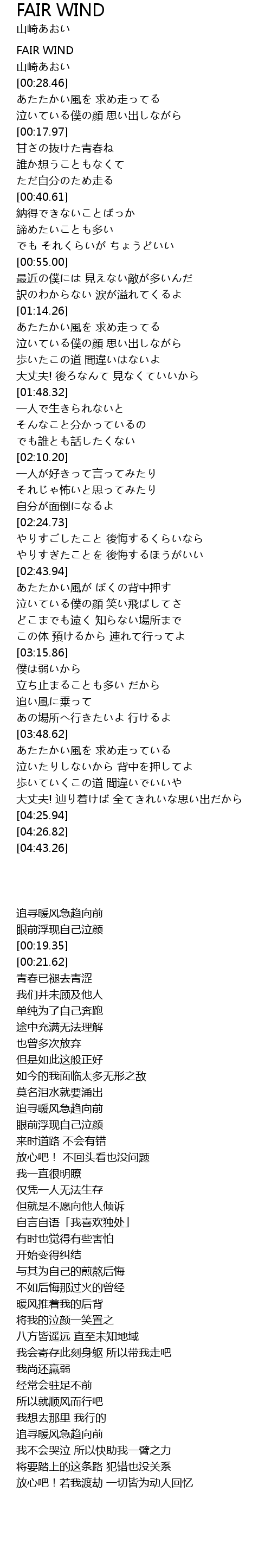 | [03:38.76] | あの場所へ行きたいよ 行けるよ |