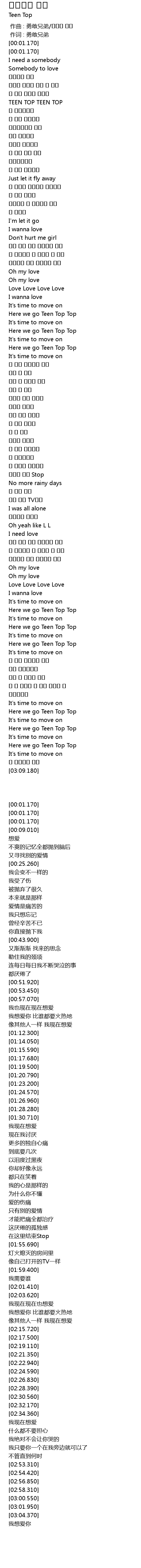| [02:28.390] | Here we go Teen Top Top |
