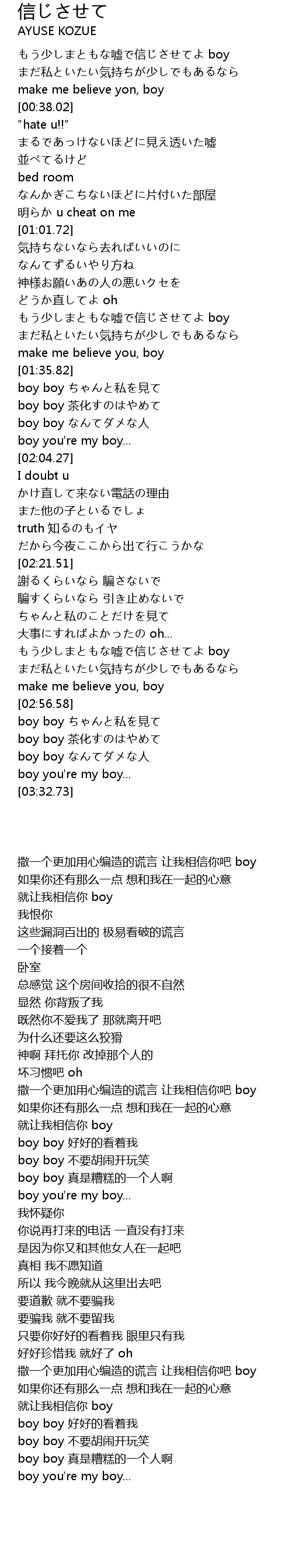 もう少しまともな嘘で信じさせてよ boy |