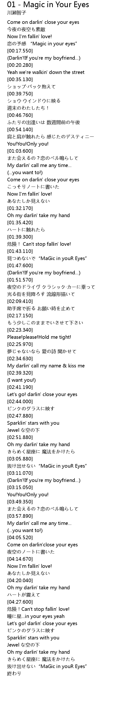 | [00:13.430] | 恋の予感 “Magic in your eyes” |