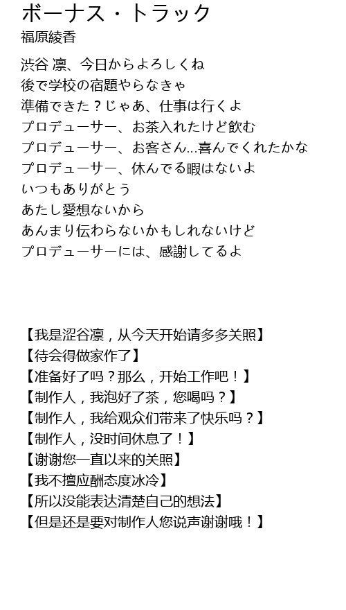 | [00:00.000] | 渋谷 凛、今日からよろしくね |