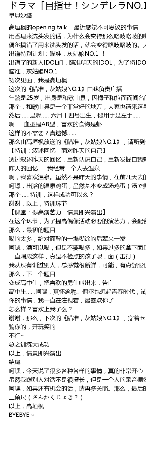 | [01:53.000] | 那么由高垣枫放送的《瞄准,灰姑娘NO.1》,请听到最后呢~ |