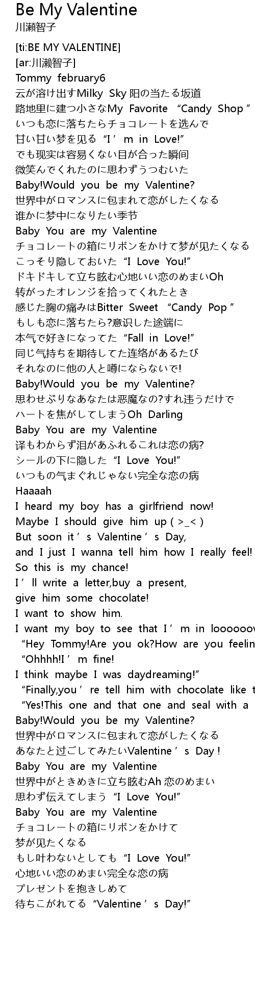 | [05:50.436] | 待ちこがれてる“Valentine ’s Day!” |