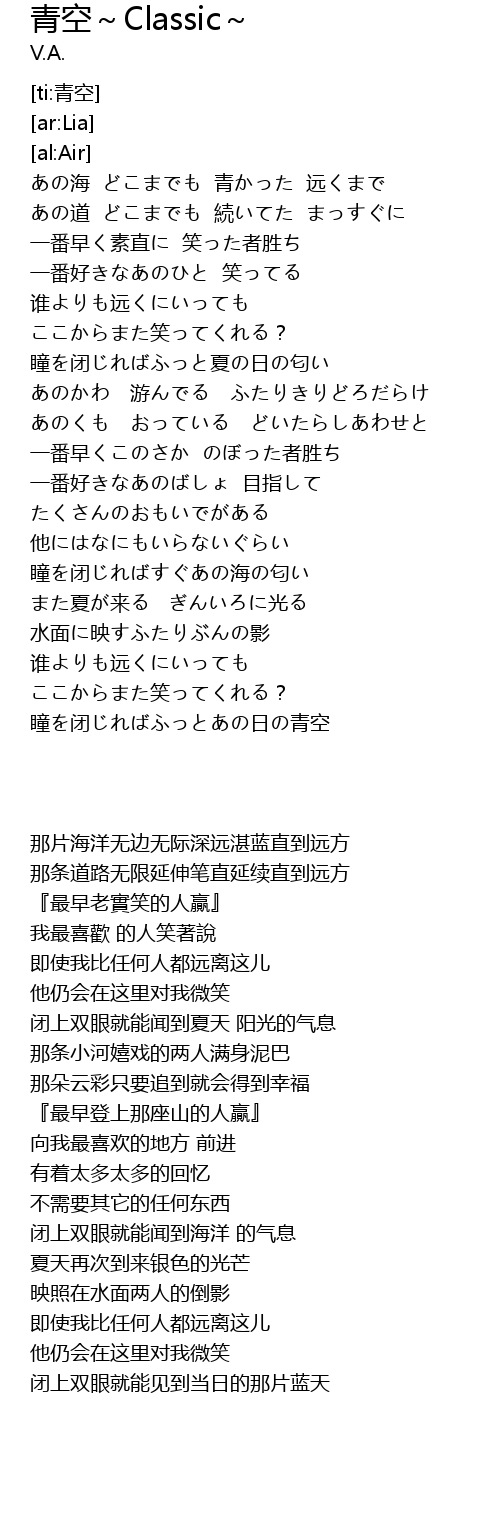 | [00:00.00] | あの海 どこまでも 青かった 远くまで |