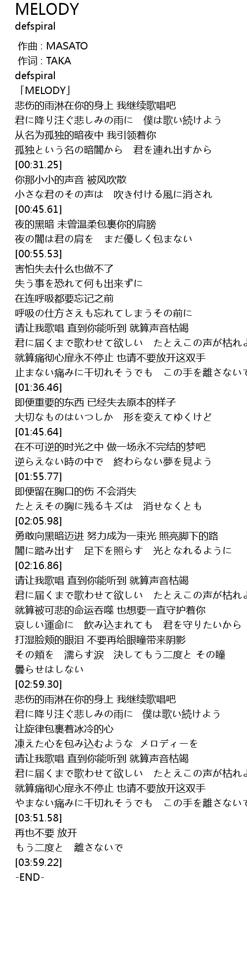 | [00:00.00] | zuo qu : MASATO |
