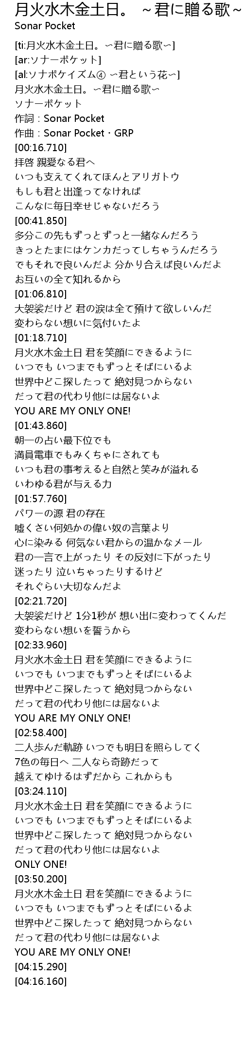 | [ti:月火水木金土日。〜君に贈る歌〜] | |