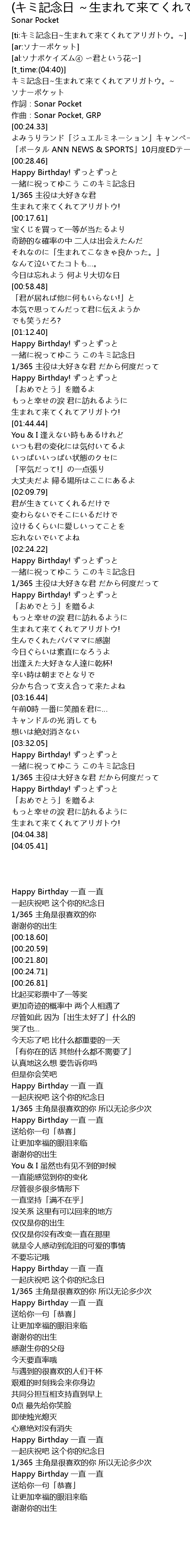 | [00:00.57] | Happy Birthday! ずっとずっと |