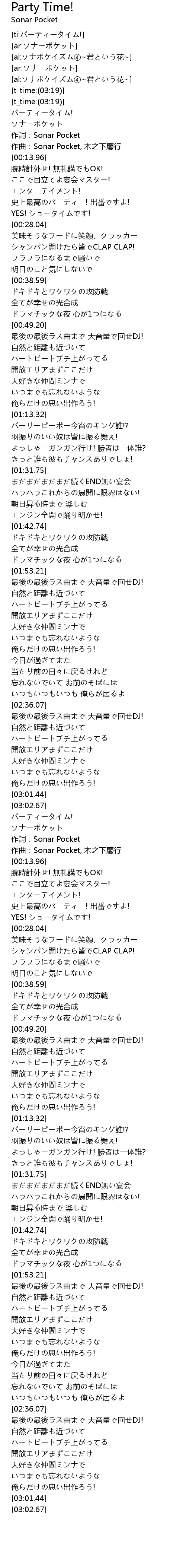 | [00:22.55] | 史上最高のパーティー! 出番ですよ! |
