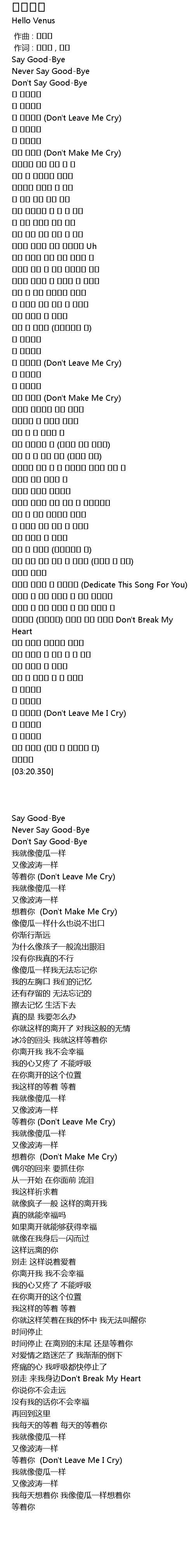 | [00:18.670] | Don' t Leave Me Cry |